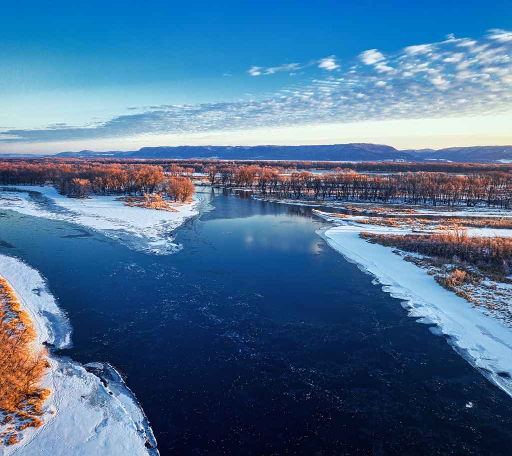 Nestled amid the hilly terrain of the Driftless Area, the De Soto area is a gem that offers a tranquil escape from the hustle and bustle of city life. As you follow the winding roads that intersect State Hwy 35, you’ll be treated to breathtaking views of wooded bluffs, picturesque valleys, and the majestic Mississippi River valley.